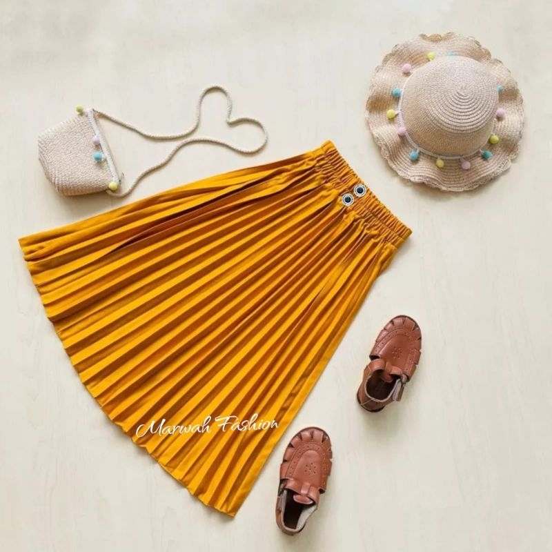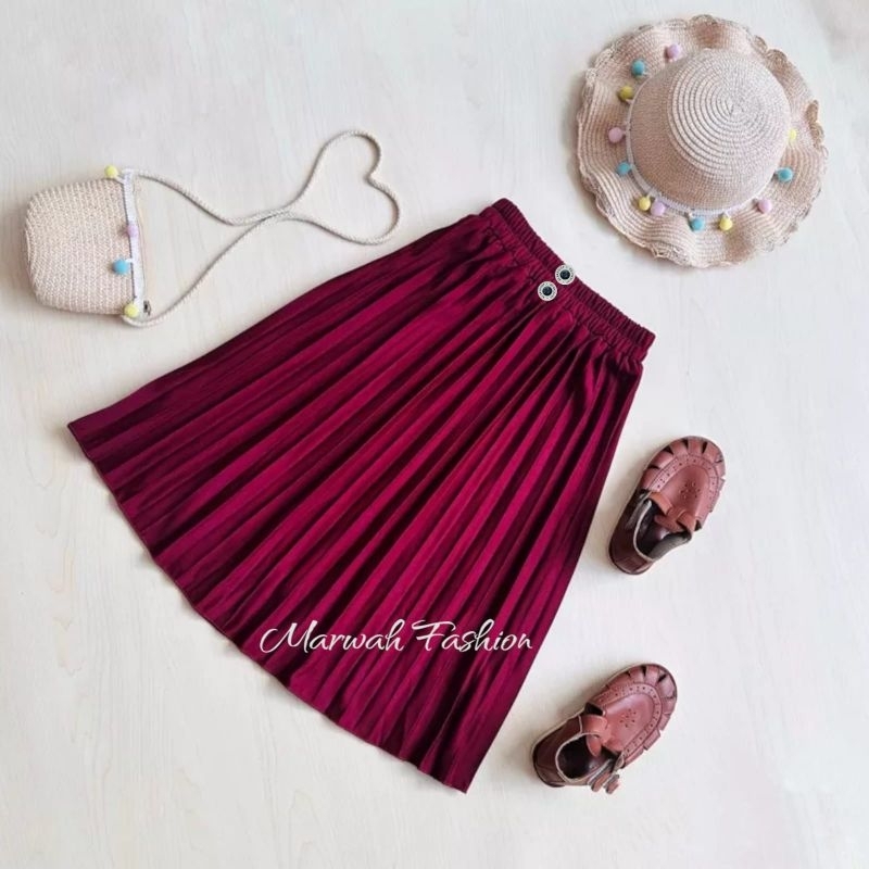Rok Plisket Kancing Anak Perempuan Usiah 4-14 Tahun Rok Plisket