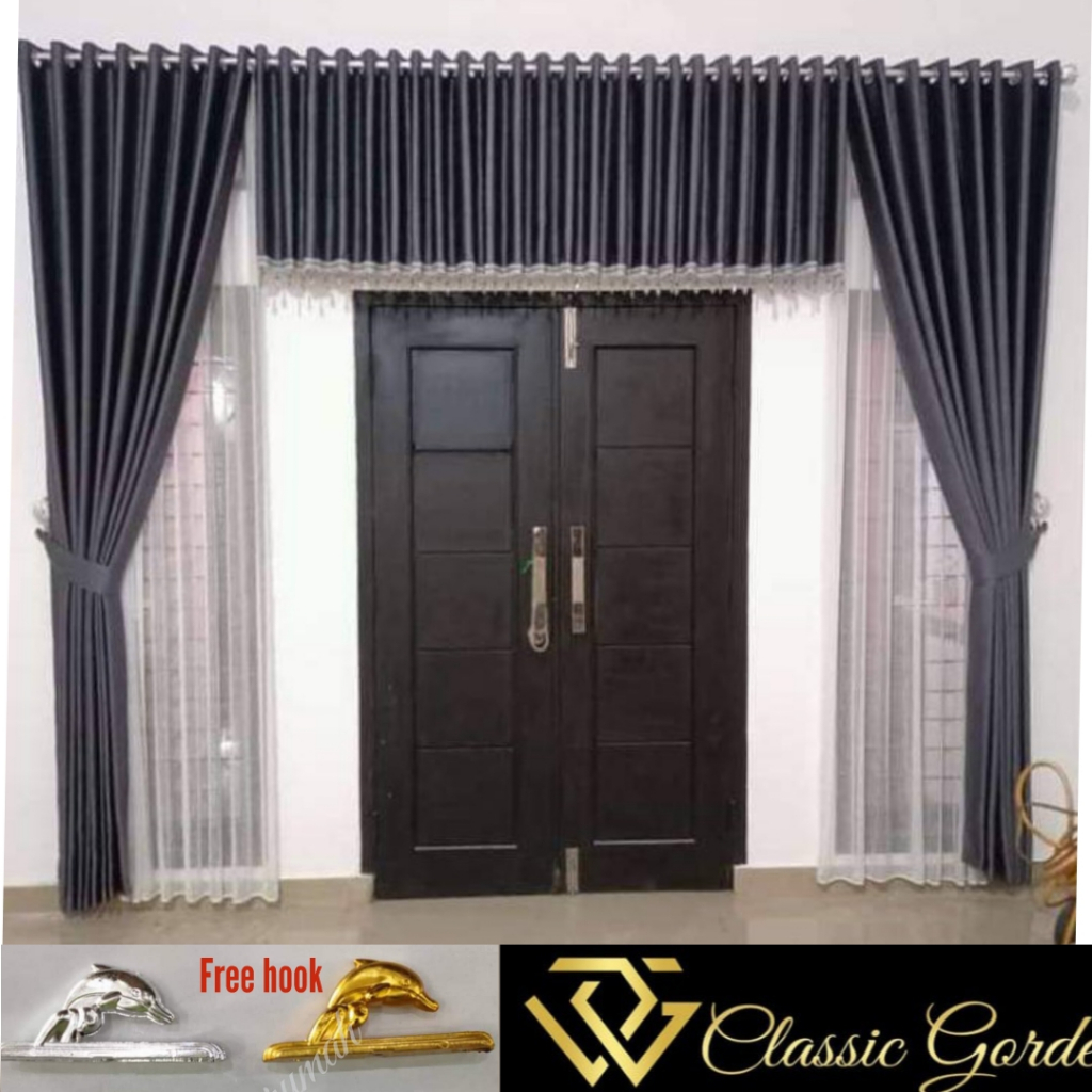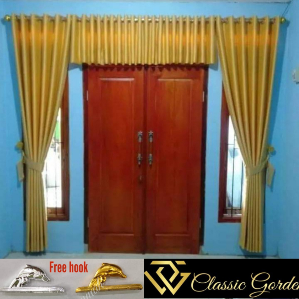 Gorden Satu Set Jendela dan Pintu Murah import Motif Polos Poni Atas Pintu Ruang Tamu