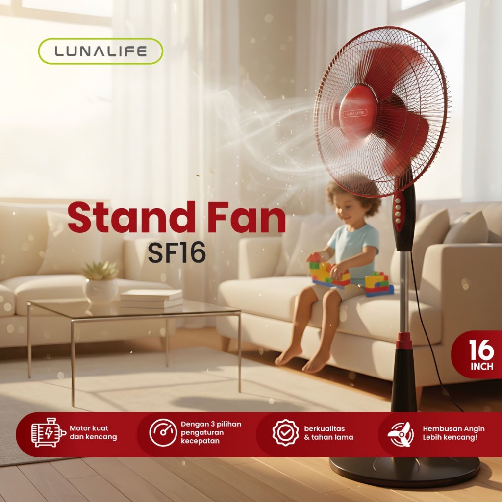 LUNALIFE Kipas Angin SNI Berdiri 16 inch 45 Watt Speed Garansi Resmi 1 Tahun - Kipas Angin Tornado