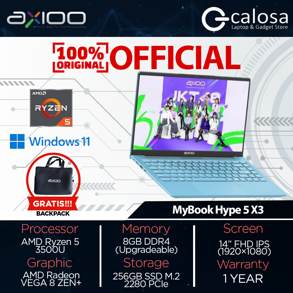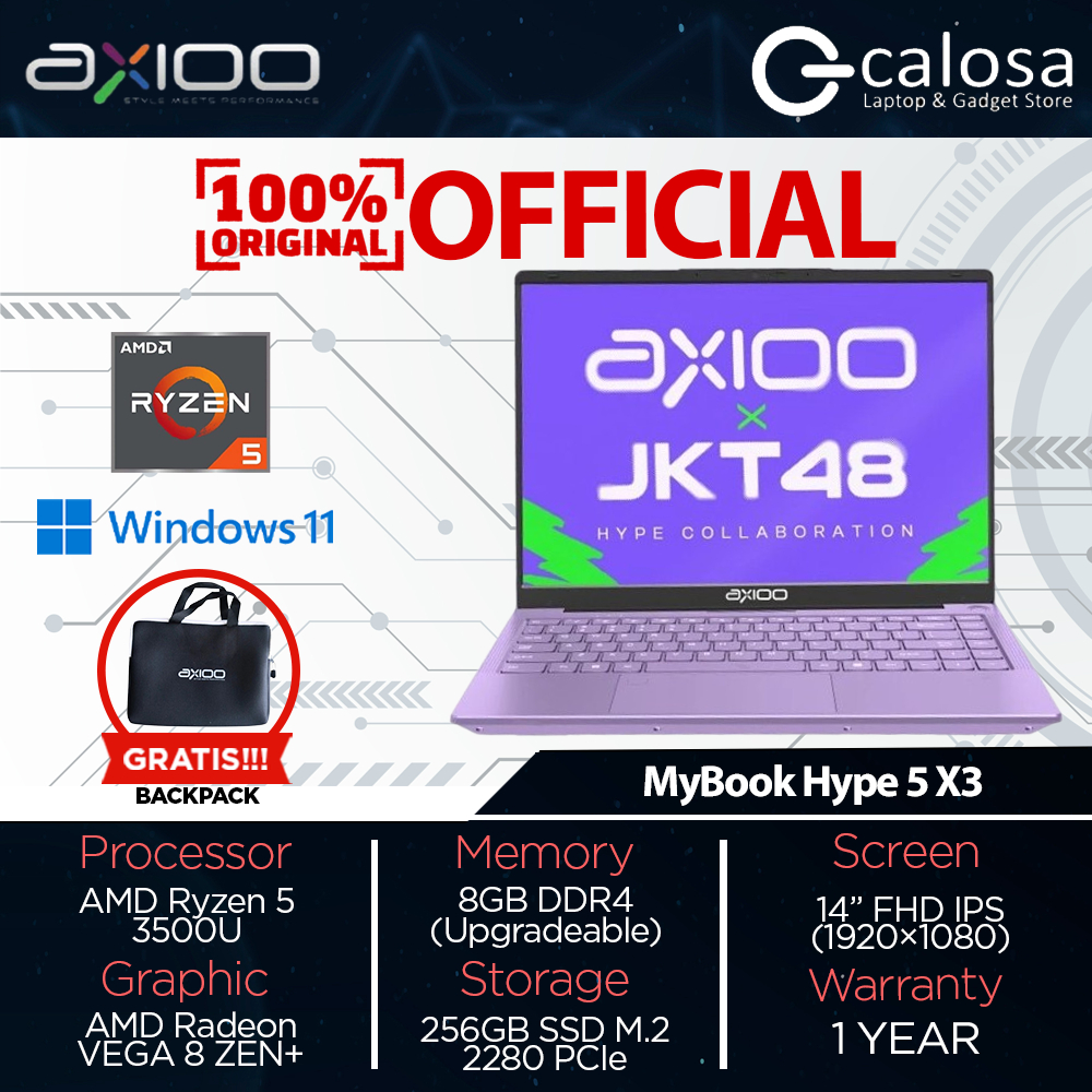 Axioo MyBook Hype 5 X3 AMD Ryzen 5 3500U 16GB / 8GB RAM 256GB SSD Windows 11 Original Laptop Pink Purple Blue LOLLIPOP