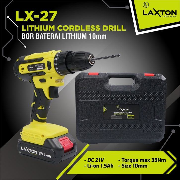 LAXTON LX27 Mesin bor baterai tangan lithium cordless drill cas 21V 10mm