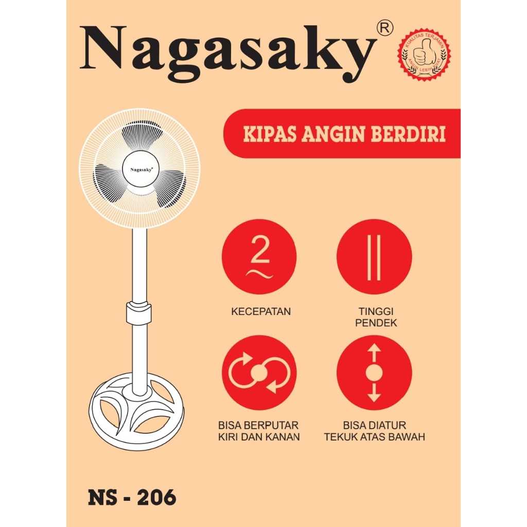 kipas angin berdiri / stand fan nagasaky ns-206 hitam/putih