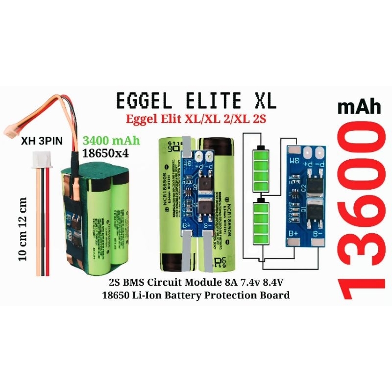 Battery EGGEL Elite XL/XL2/XL 2S 7.4V 8.4V BMS 2S 3A 8A 11600 mAh 12400 mAh 13600 mAh High Capacity Soket XH 3PIN
