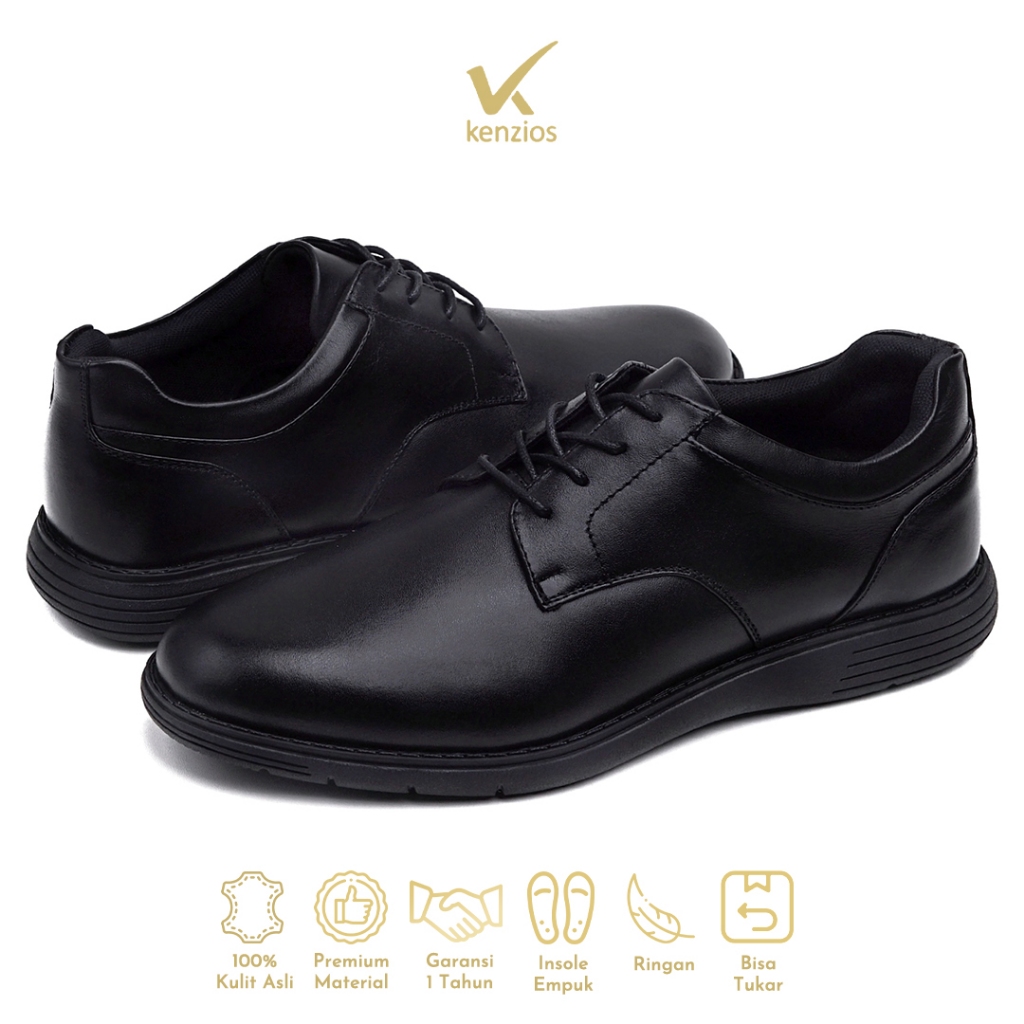 Kenzios ERDO Black Series Sepatu Formal Casual Pria Kulit Asli