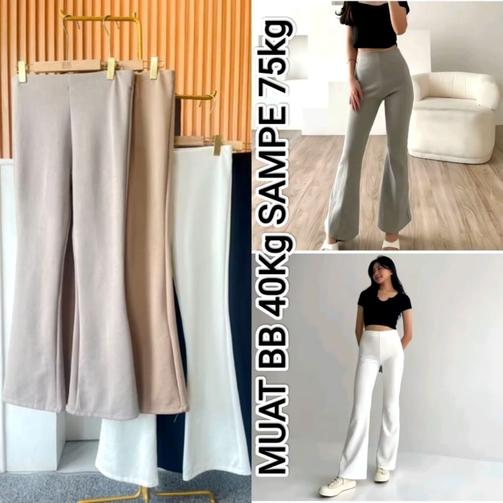 Celana Fit And Flare Pants Highwaist - Celana Cutbray Wanita Basic Bahan Stretch Melar Elastis Kulot Scuba Jumbo
