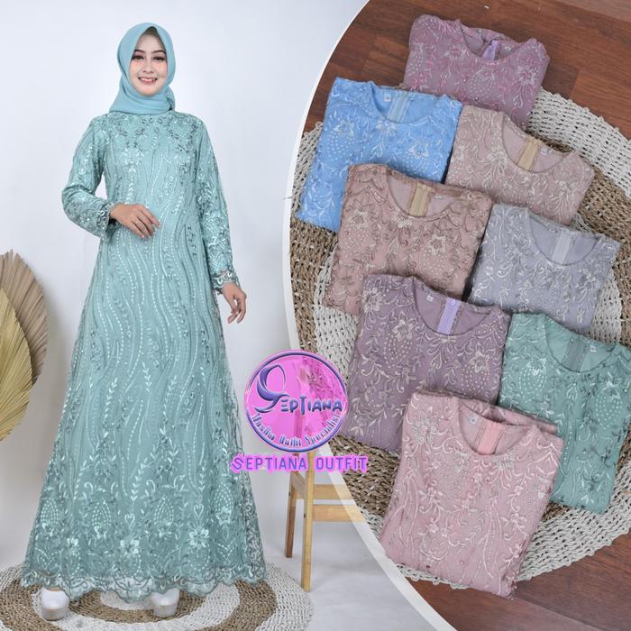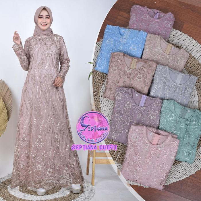 Septiana- Gamis Brukat Tile Mutiara Motif Akar Dress Burkat Tile Kondangan Elegan Simple Maxi Mewah Pesta Kebaya Wisuda