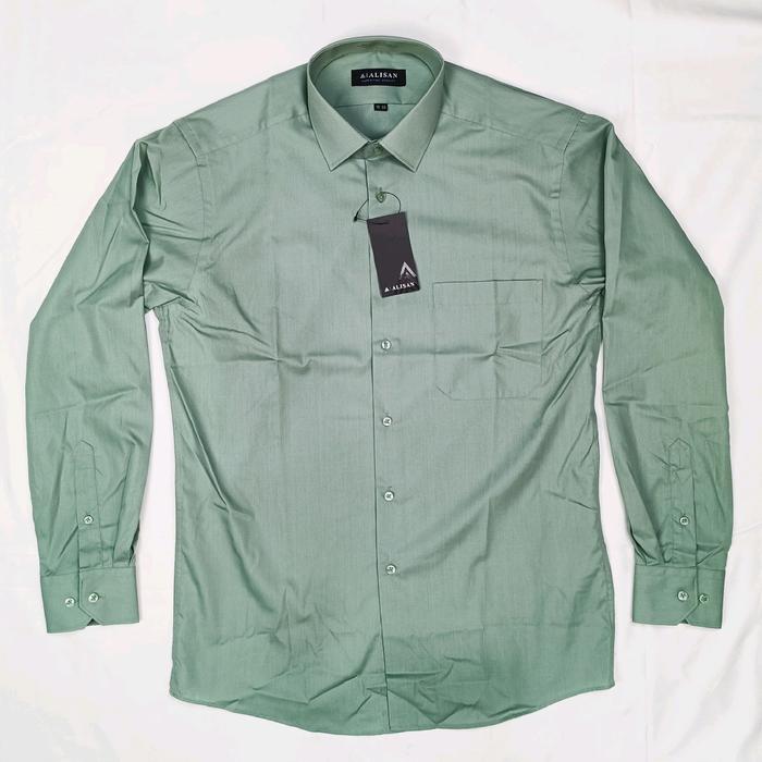 Kemeja Pria Alisan Lengan Panjang Slimfit Berbagai Warna Polos Formal Hitam Baju Kantor Putih - Putih, 14.5
