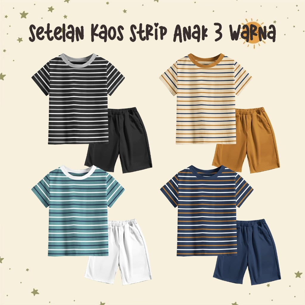 Setelan Anak Strip 3 Warna Laki-Laki Perempuan