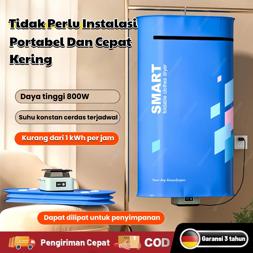 【Ready Stock】Mesin Pengering Pakaian Portabel Pemanas Pengering Pakaian Lipat Listrik Pengering Otomatis Untuk Pakaian