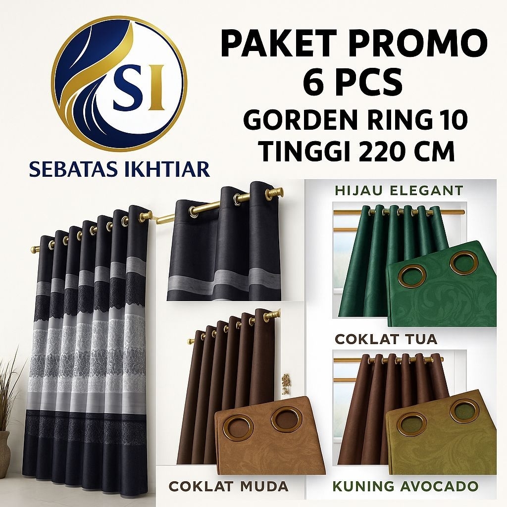 PAKET 6 PCS ,4 PCS DAN 3 PCS GORDEN JENDELA DAN PINTU MINIMALIS 10 LUBANG RING