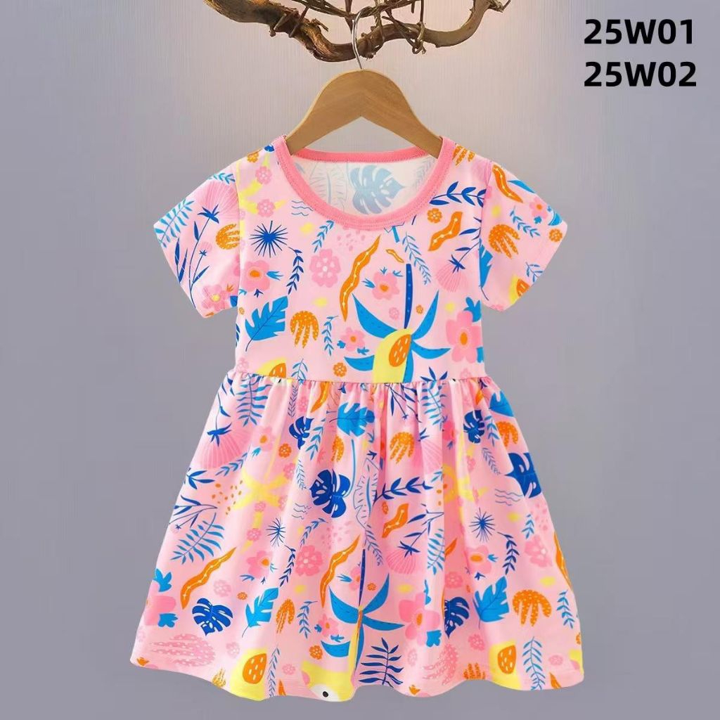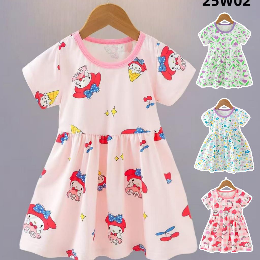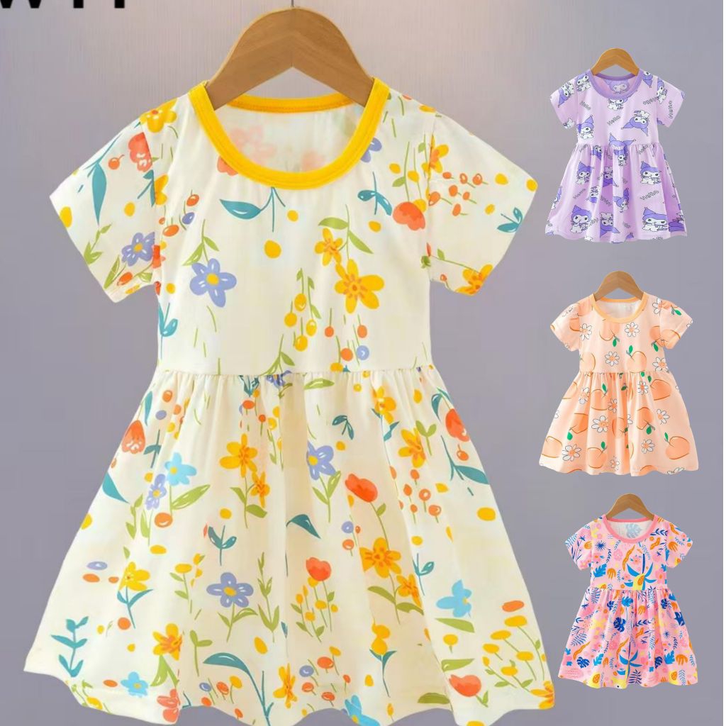 Dress Anak Kasual Lengan Pendek Motif Lucu Baju Santai Anak Perempuan Dress Baby Lengan Pendek