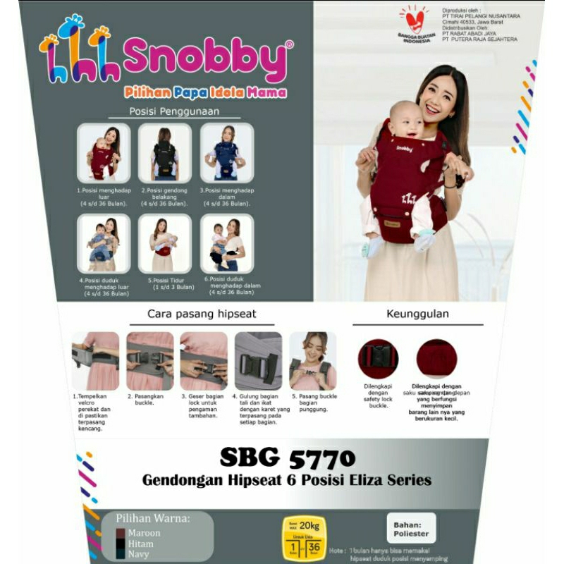 Snobby Gendongan Bayi Hipseat 6 Posisi + Box Eliza Series | Xelyn | Hipseat Premium Snobby Polos Eliza | Hip seat Snobby