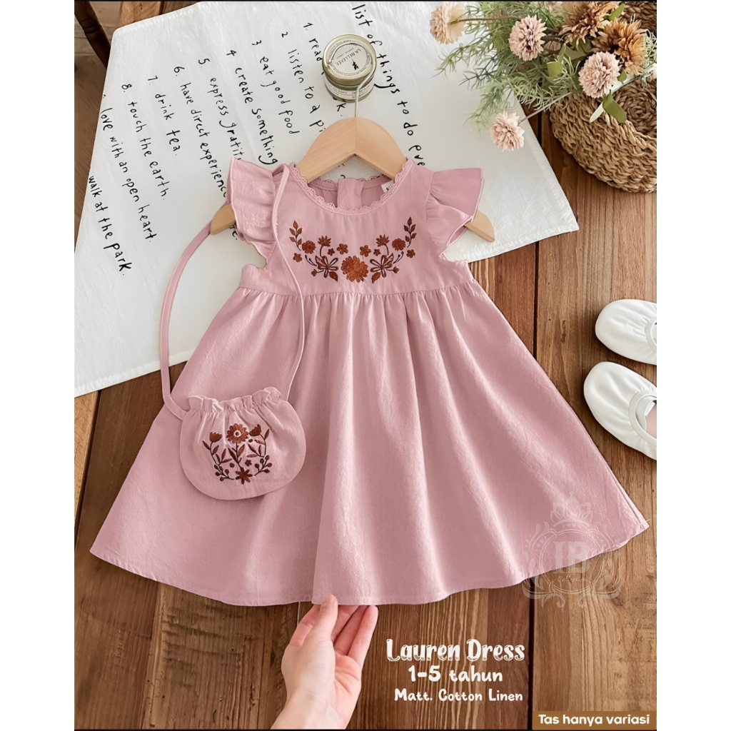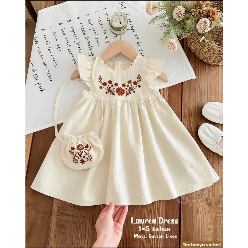 Dress Anak Perempuan Import 1-5 Tahun Katun Linen Motif Bordir