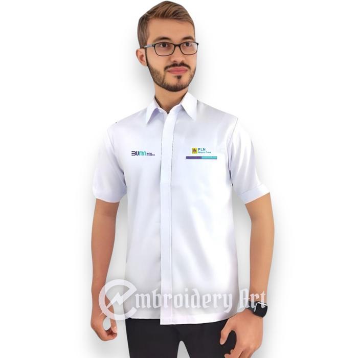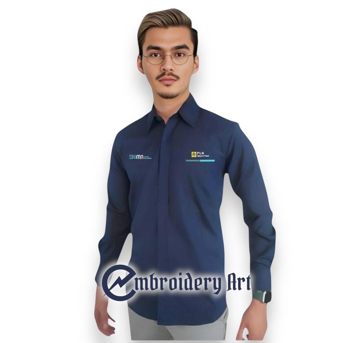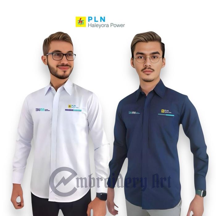 Kemeja Seragam PLN Haleyora Power lengan Pendek / Panjang , full bordir Pria - wanita Navy Putih