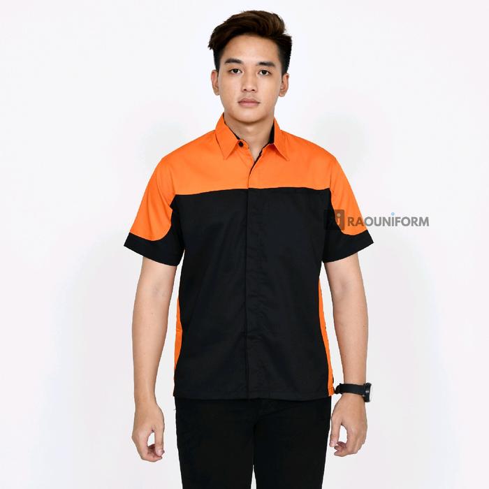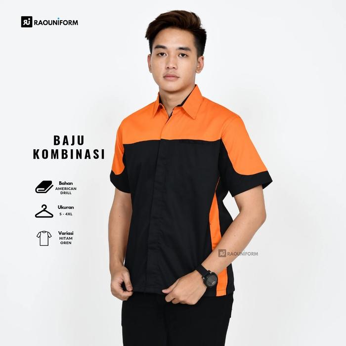 Raouniform Kemeja Atasan Pria Baju Seragam Lengan Pendek Seragam Kantor Formal Bordir Kombinasi