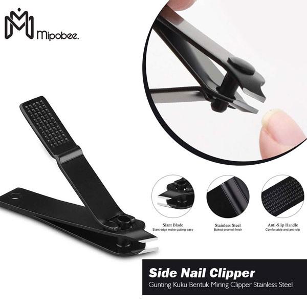 Mipobee Perawatan Gunting Kuku Bentuk Miring Side Nail Clipper Stainless Steel - Hitam - NAIL ACC - Hitam