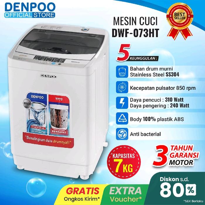 MESIN CUCI 1 TABUNG DENPOO DWF 073 HT TOP LOADING 6 KG DWF073HT