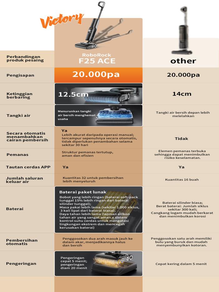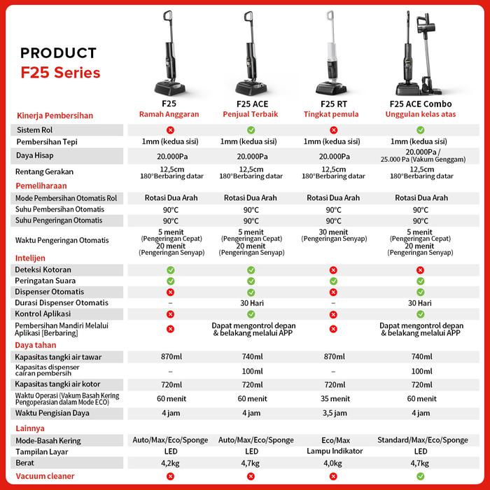 Roborock F25 & F25 ACE Vakum Cleaner Penghisap Debu Wet & Dry Daya Hisap Super 20000Pa & Pembersihan