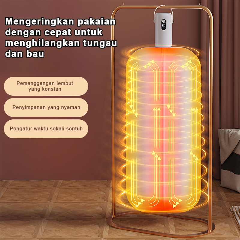 Pengering Baju Portable Mini Hemat Daya Anti Tungau 80°C Timer Otomatis untuk Rumah dan Travel