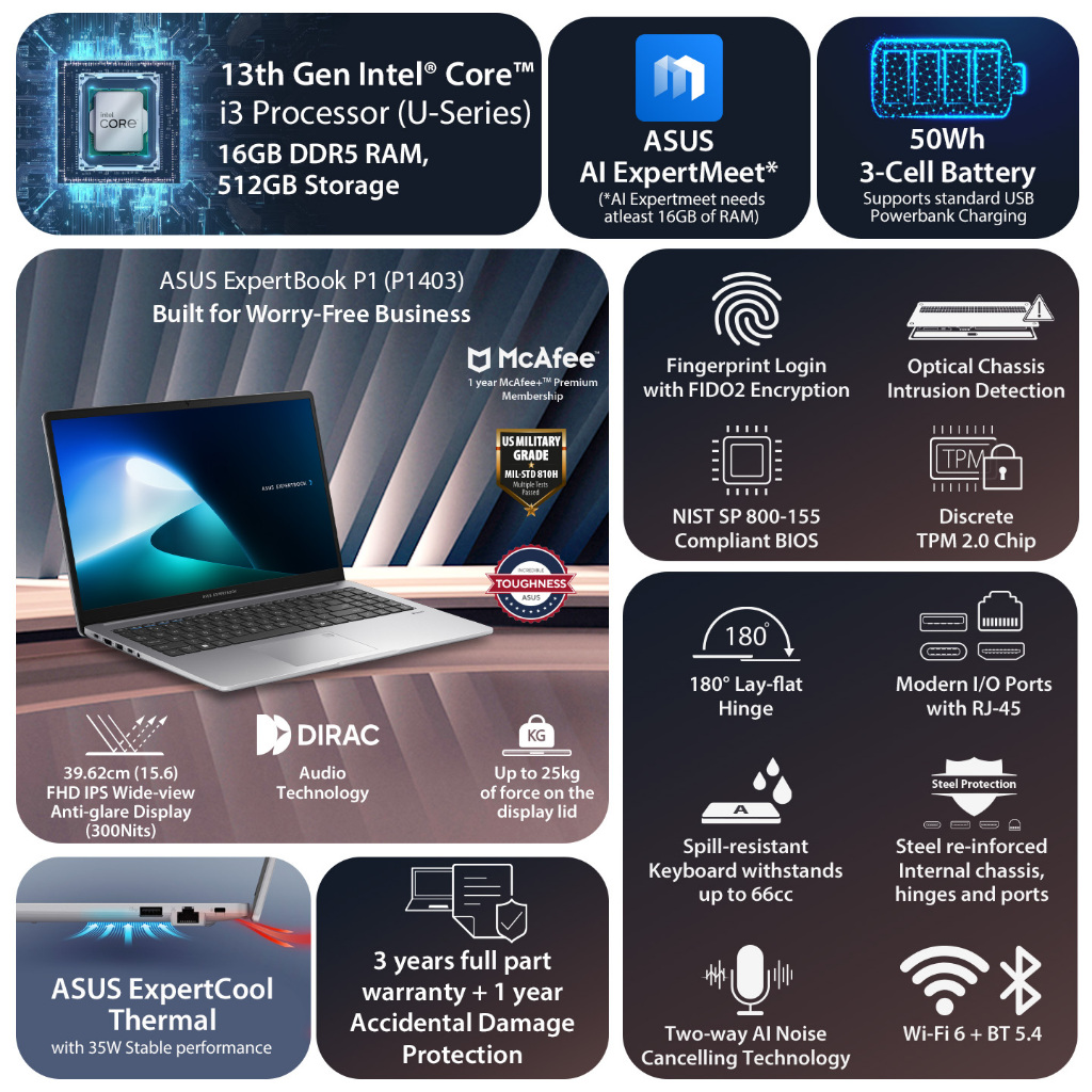 Asus ExpertBook P1 P1403CVA-S65150WS - Laptop Core i5 13420H RAM 16GB SSD 512GB Intel UHD Graphics