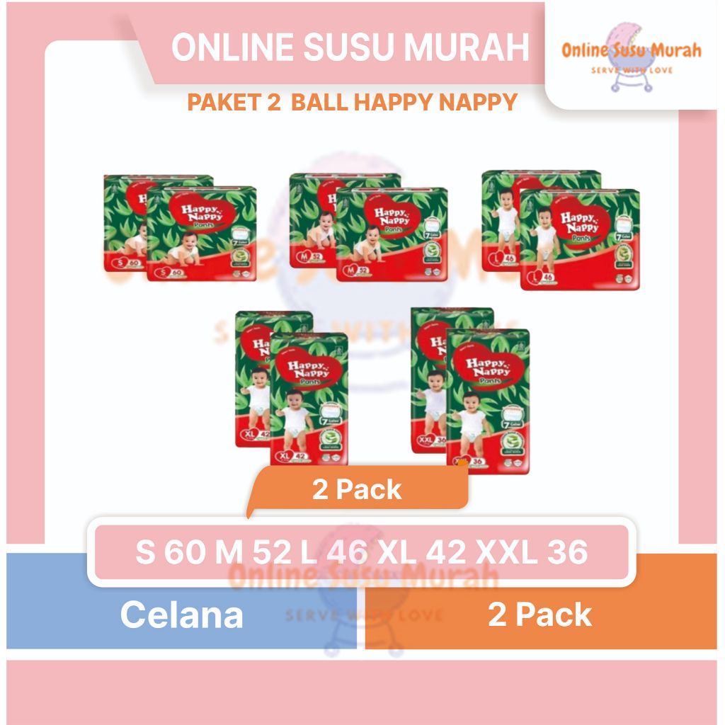Happy Nappy Smart Pants Paket 2 Ball S60 M52 L46 Xl42 Xxl36 Popok Celana S60 M52 L46 Xl42 Xxl36 Ppks