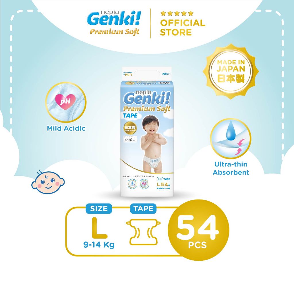 Nepia Genki Popok Bayi Tape / Perekat Bayi Diapers Premium Soft L54