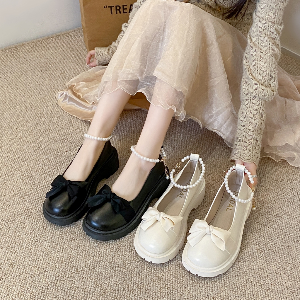 Sepatu Docmart Wanita Platform Hak Tinggi 6Cm Mary Jane Warna Cream Chalk Ki-058
