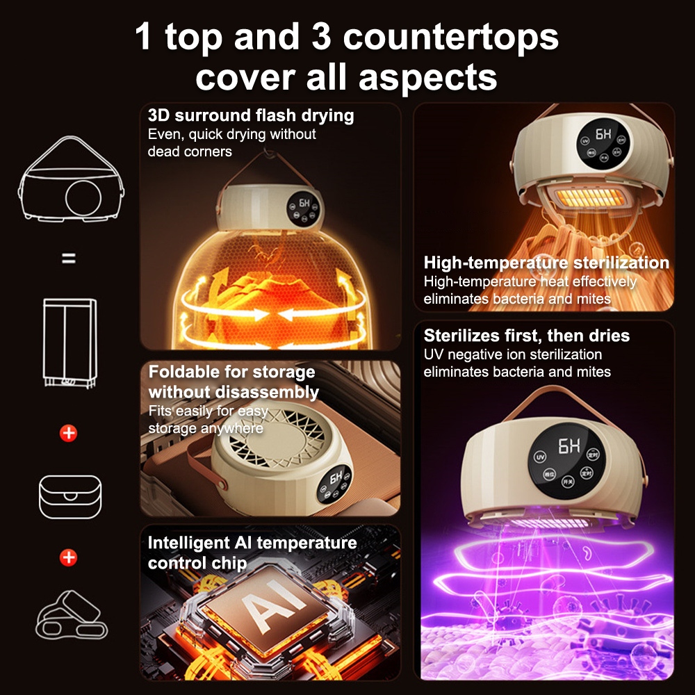 650W Pengering Pakaian Portabel Pintar Dengan Sterilisasi UV Dan Kendali Jarak Jauh, Mesin Pengering Pakaian Rumah/asrama
