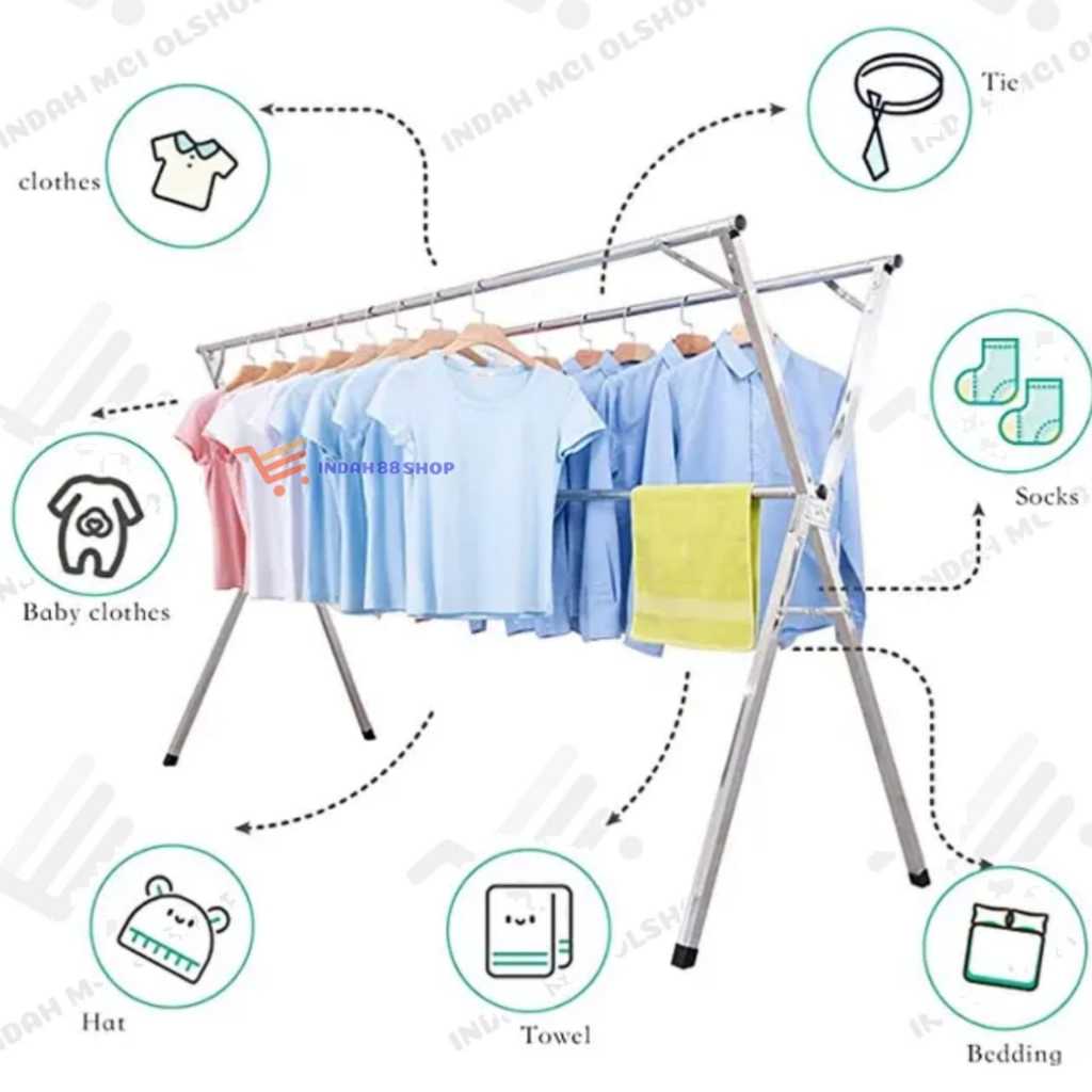 Jemuran Baju Lipat 160cm / Rak Pengering Pakaian Portable