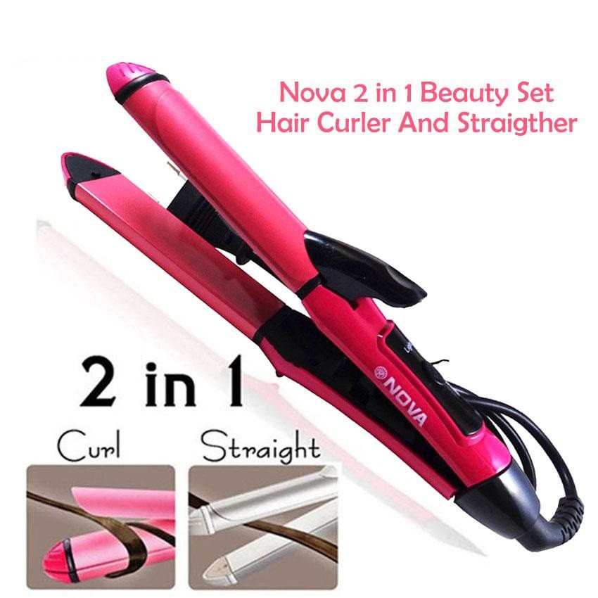 Nova 2in1 2009 Hair Beauty Set NHC-2009 - Catokan Pelurus dan Pengeriting Rambut - Pink