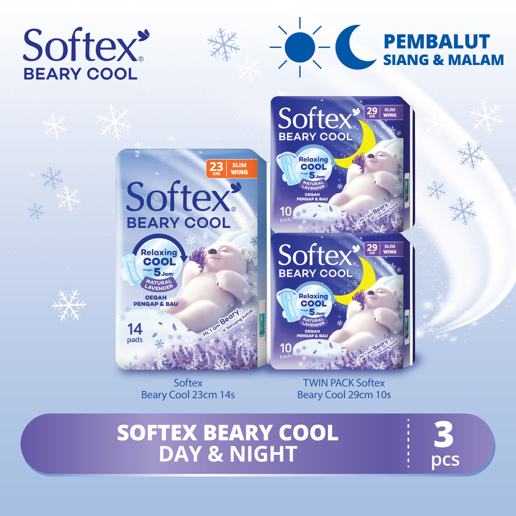 Softex Beary Cool 23Cm + 29Cm - Pembalut Dingin Siang & Malam