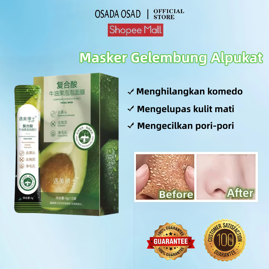 OSADA OSADI Masker gelembung alpukat asam majemuk/Pembersihan mendalam, penghilang komedo, jerawat, pelembab, peremajaan