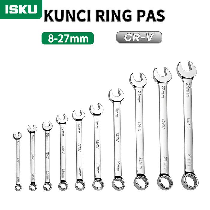 Isku Kunci Ring Pas 8/9/10/11/12/13/14/17/18/19/21/22/24 Mm Kunci Ring Set Lengkap Combination Spanner Wrench Kombinasi/