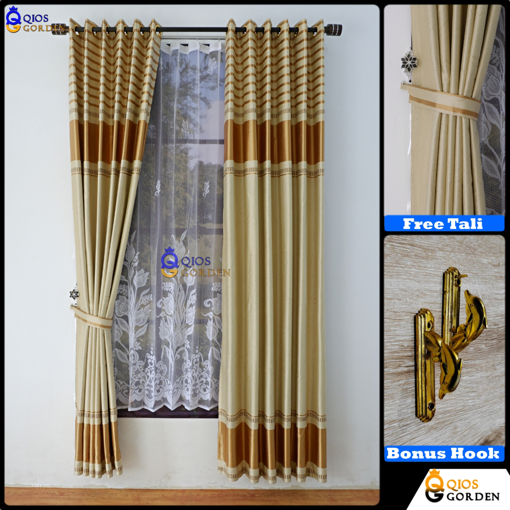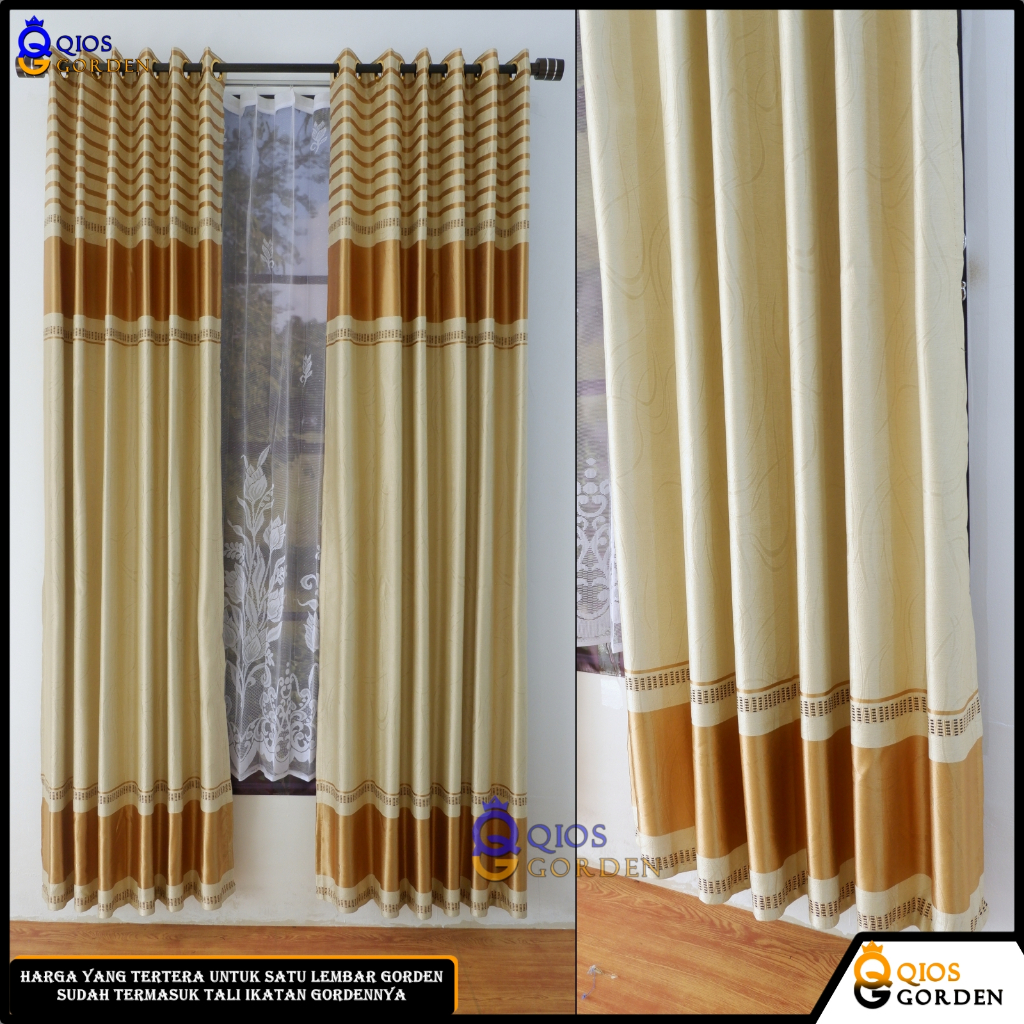 Gorden Jendela Blackout Motif Flat Garis Kesan Premium Dan mewah Model Smokering 110x230