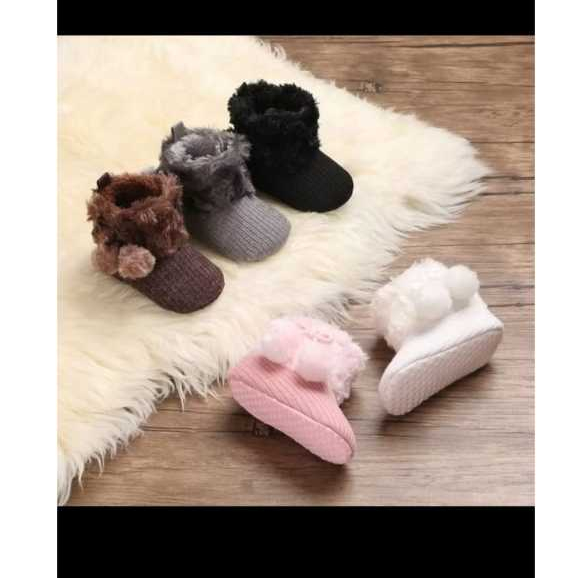 COCO Sepatu Bayi Perempuan Prewalker 0 - 12 Bulan Murah / Sepatu Baby Cewek POMPOM Halus Newborn Terbaru