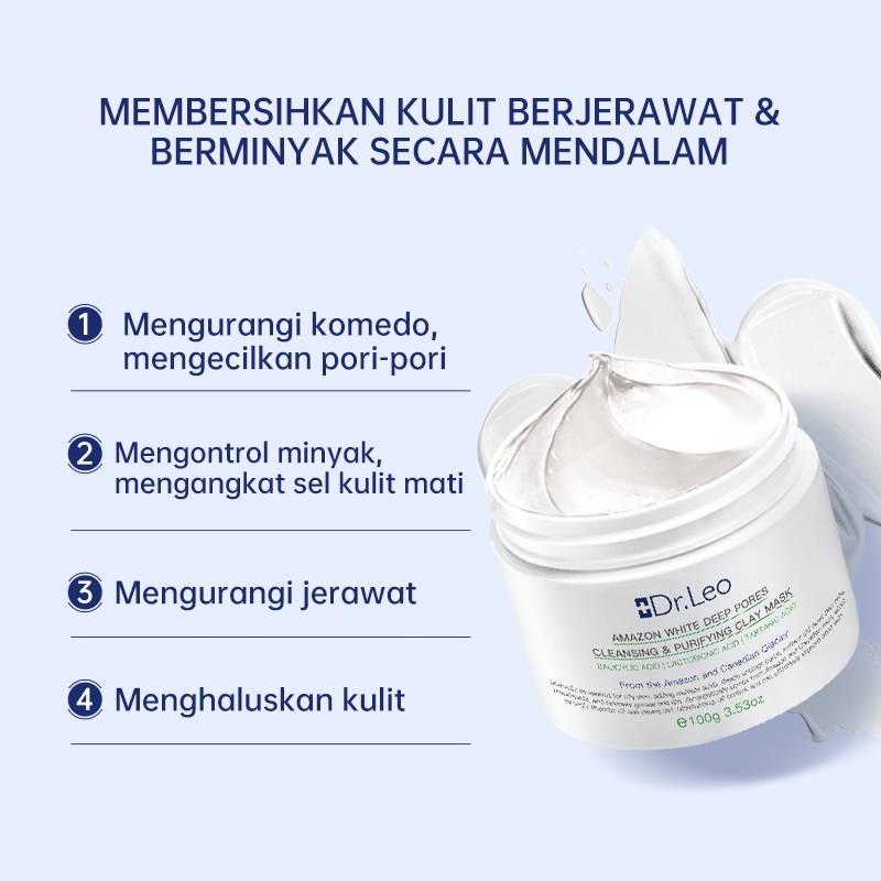 [buy 1 free 1] Dr.Leo -Amazon White Deep Pores Cleansing & Purifying Clay Mask Obat Komedo Masker Wajah / Masker Wash Of