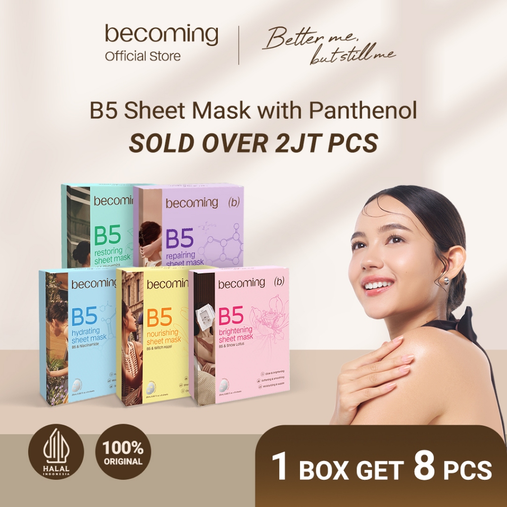 [BUY 7 GET 8] becoming B5 Sheet Mask 25ml with Panthenol | Bundle Isi 8pcs 1 Box | Masker Wajah
