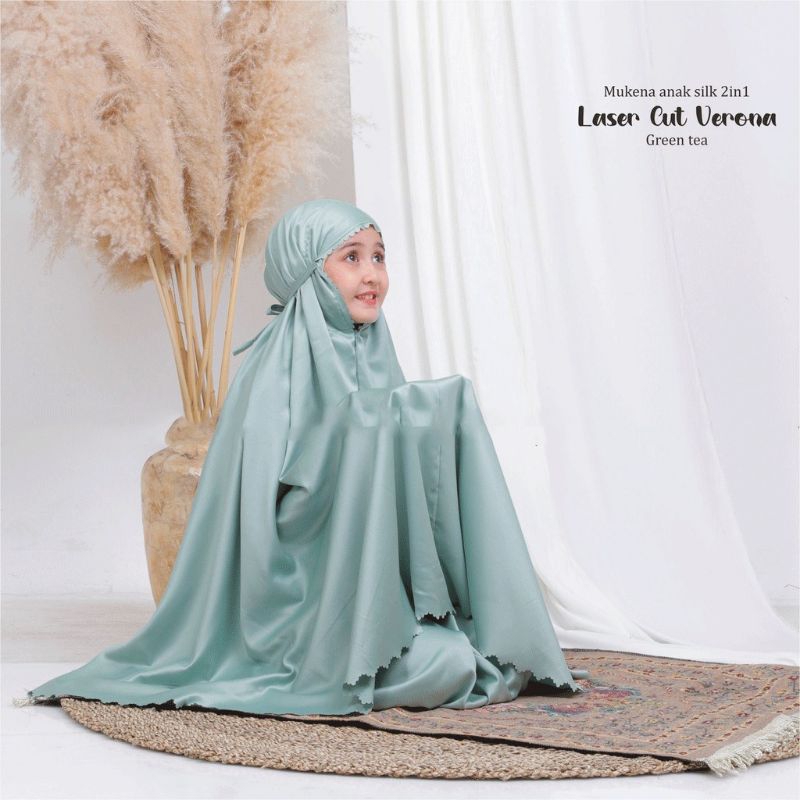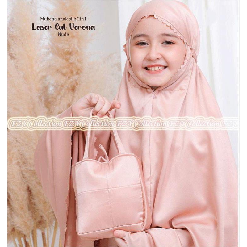Mukena Anak 2In1 Umur 8-13 Tahun Bahan Satin Silk Premium Finishing Laser Cut Mukena Anak Tanggung Premium