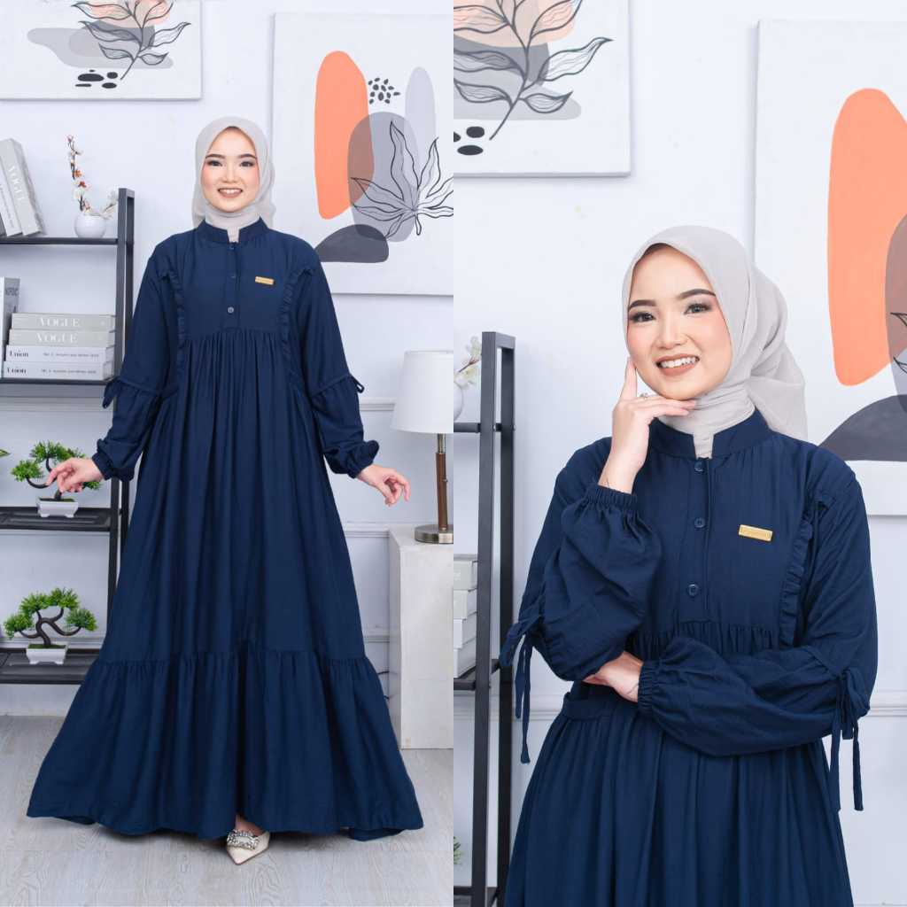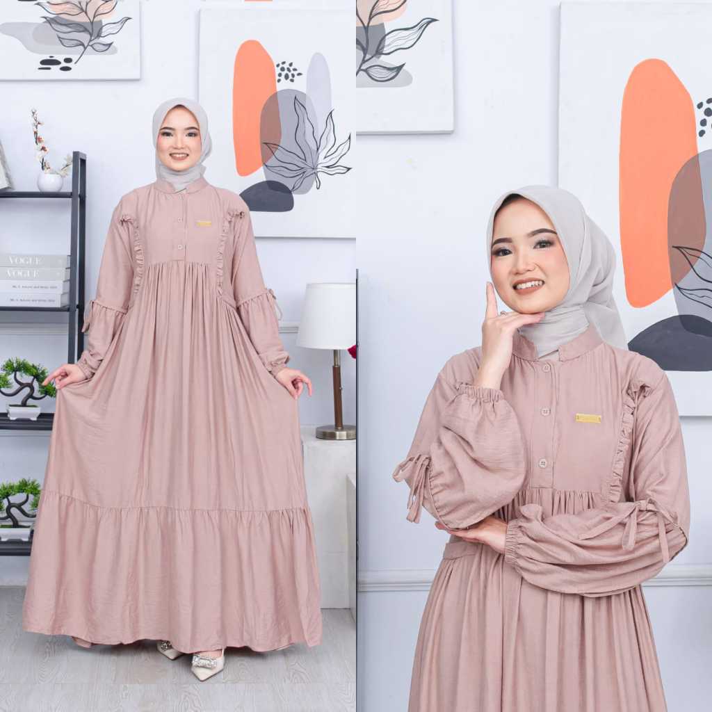 ZAFIRA DRESS Gamis Muslimah Polos Polo Linen Aksen Kancing Variasi Ruffle Cantik Busui Friendly
