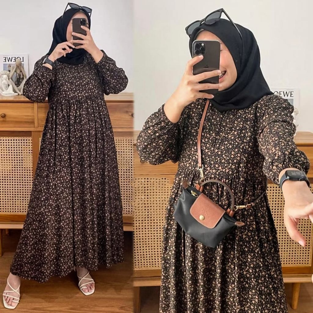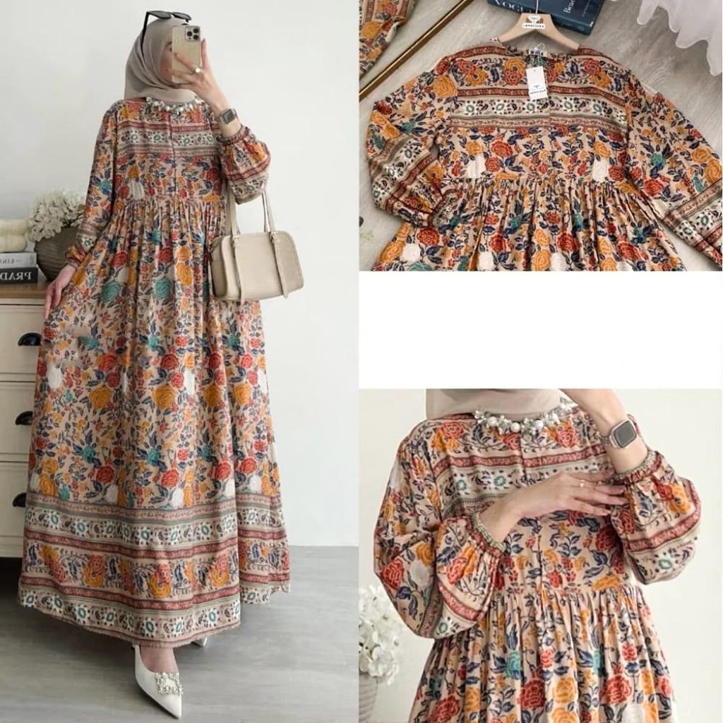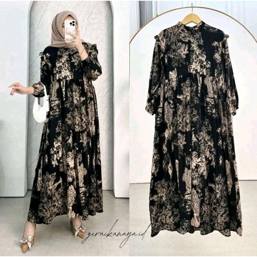 Kalana Midi Dress Ld 110 Dress Busui Friendly Mat Rayon Motif Bunga