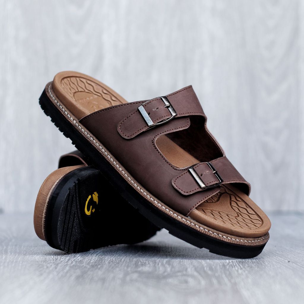 SANDAL SLIDE SLOP HITAM PRIA KULIT SAPI ASLI PREMIUM QUALITY TRIFFY PRODUK LOKAL BISA UNTUK ACARA FORMAL DAN KASUAL