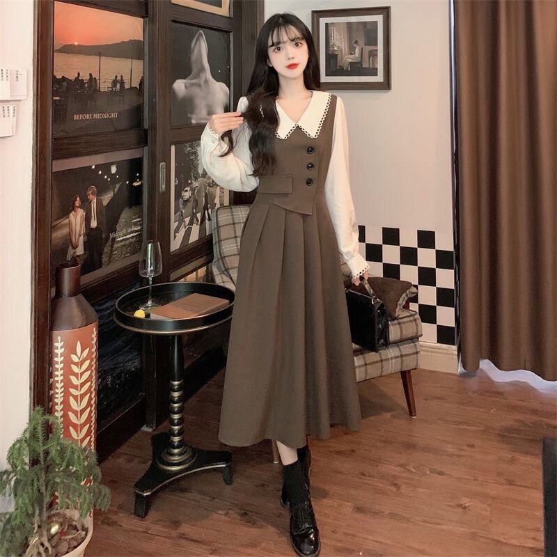 Dress New Collar Style Vintage Lengan Cream Dress Lebaran - G019