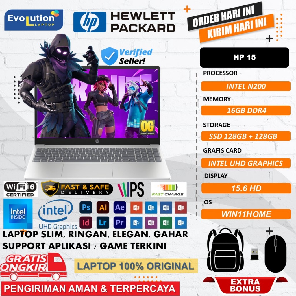 Laptop Hp 15 INTEL N200 RAM 16GB 256GB SSD 15.6 WINDOWS 11 HOME SILVER