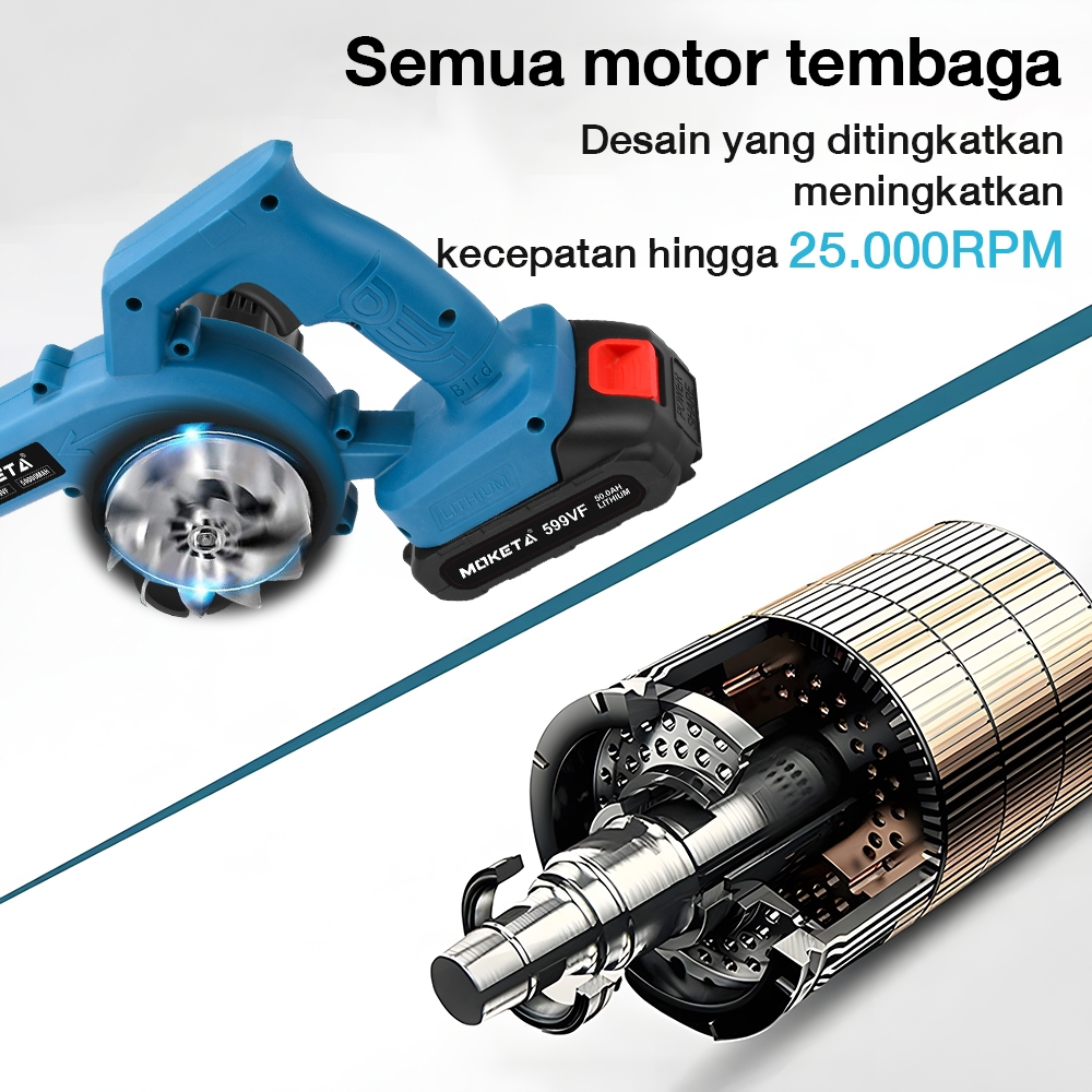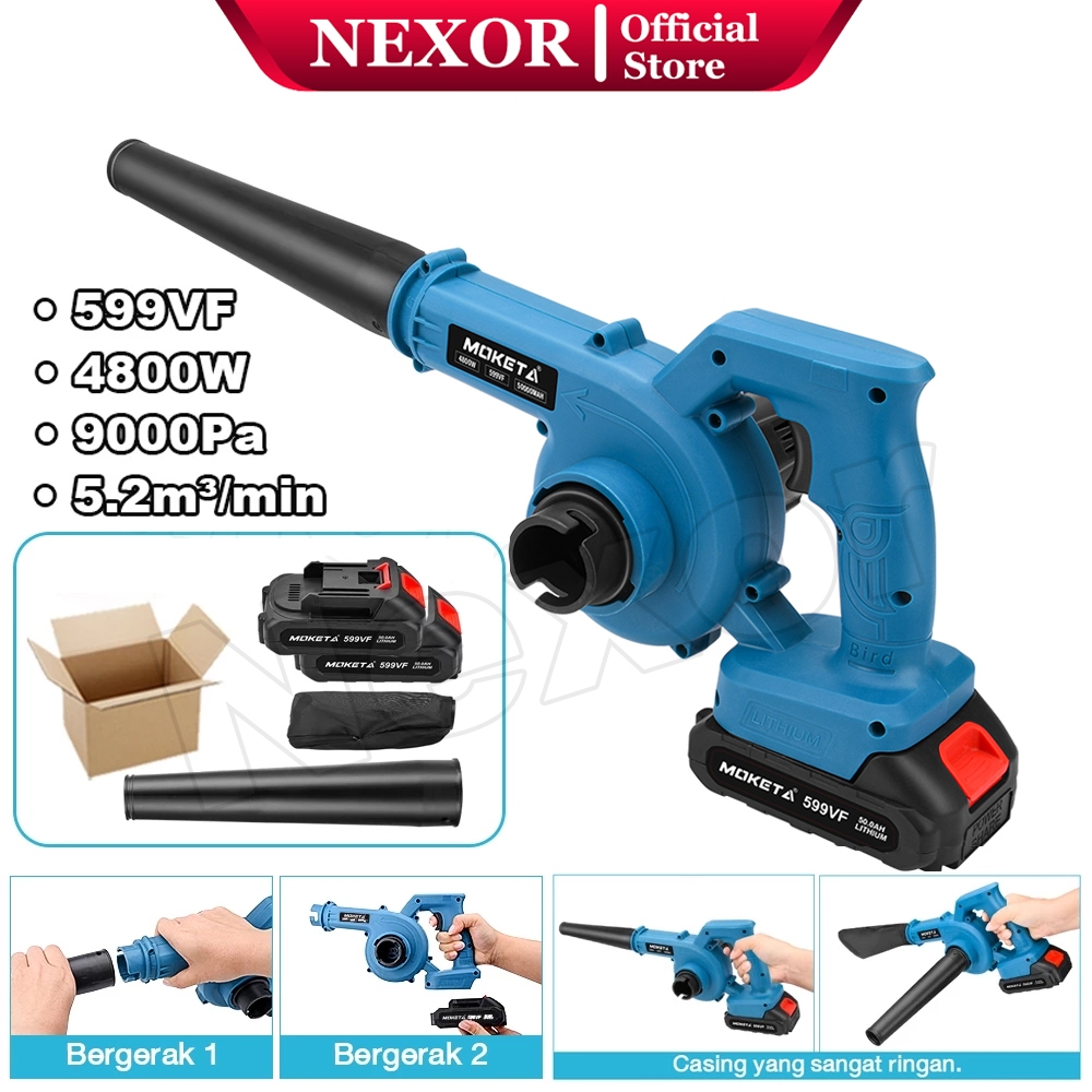Nexor 4800W Mesin Blower Tangan Cordless Blowe Elektrik Tiup Tangan 599V 2 Baterai