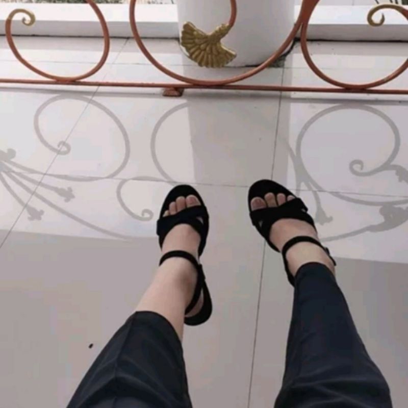 Sandal Sepatu Wanita Trendy High Heels Hak Kotak 5Cm