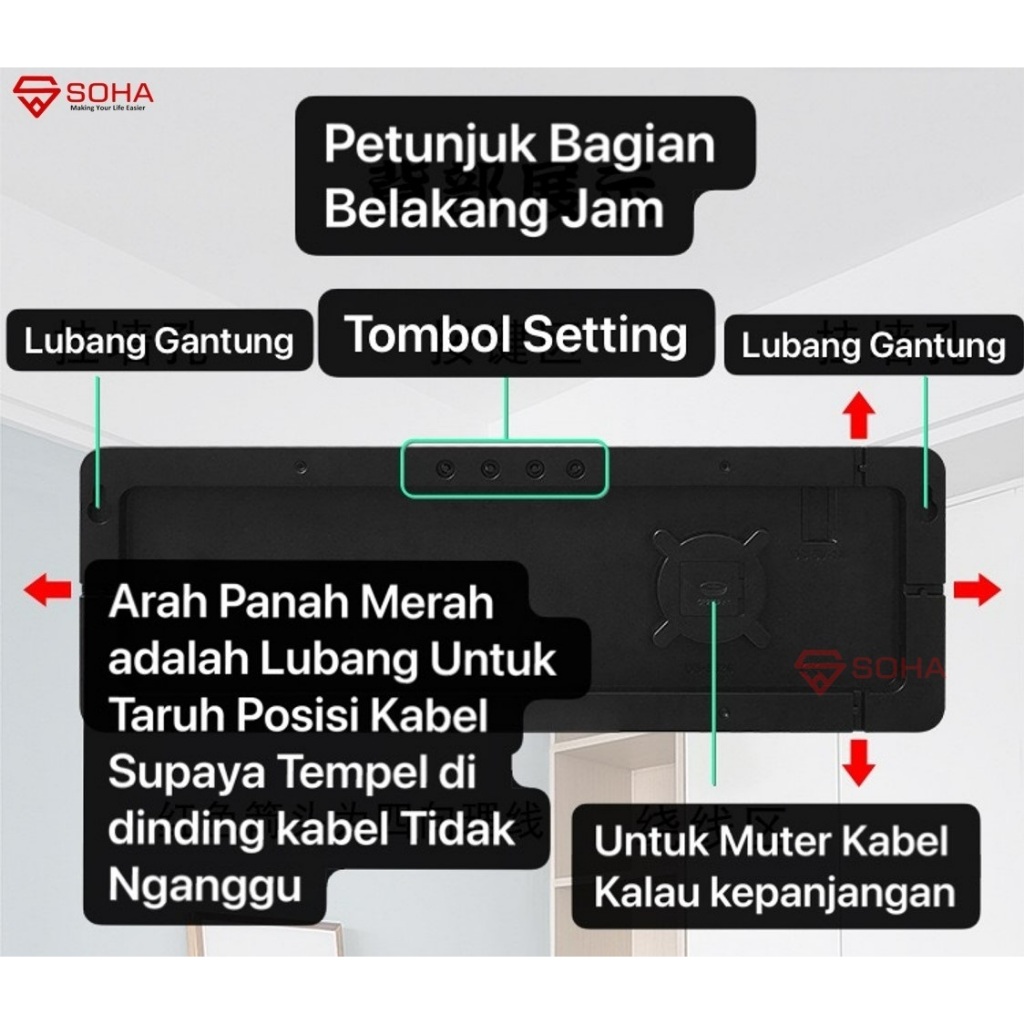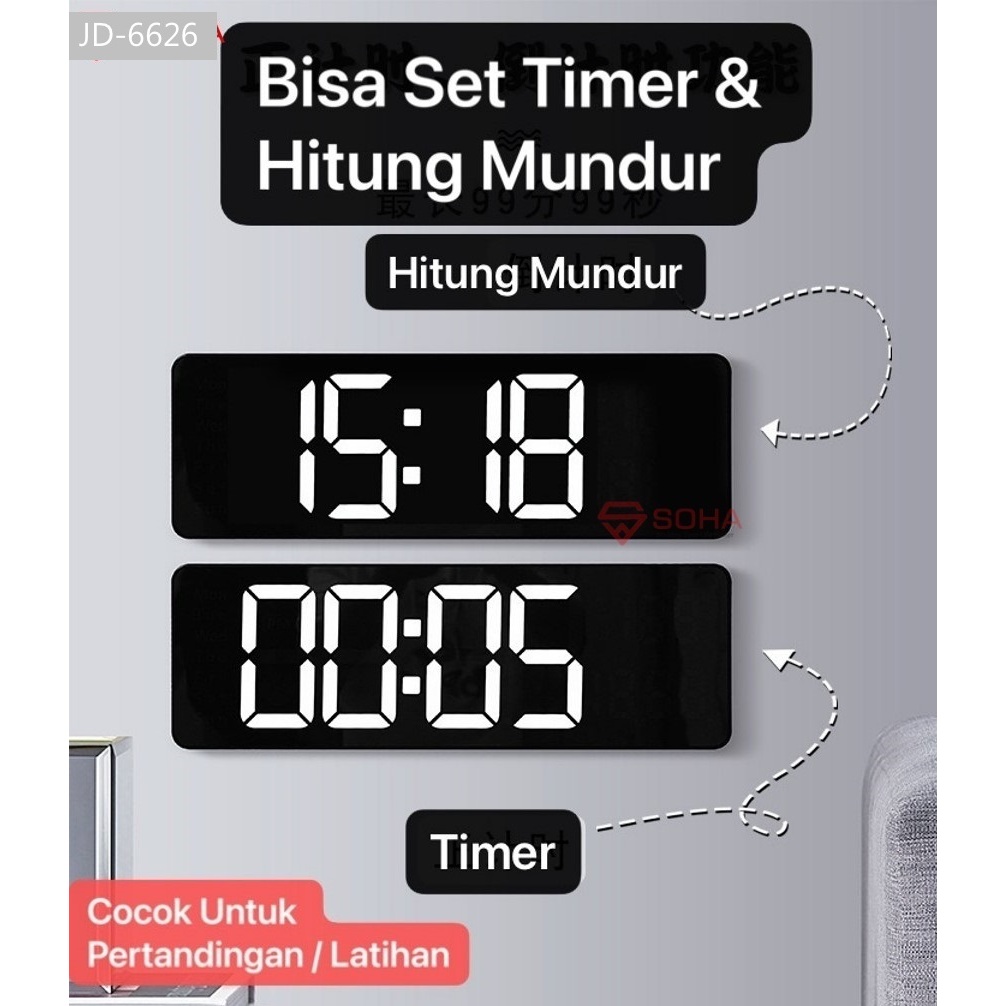 JD-6626 Jam Digital LED Besar 16 Inch Jelas Jam Dinding Fitur Kalender Alarm Weker Timer Countdown Smart Watch
