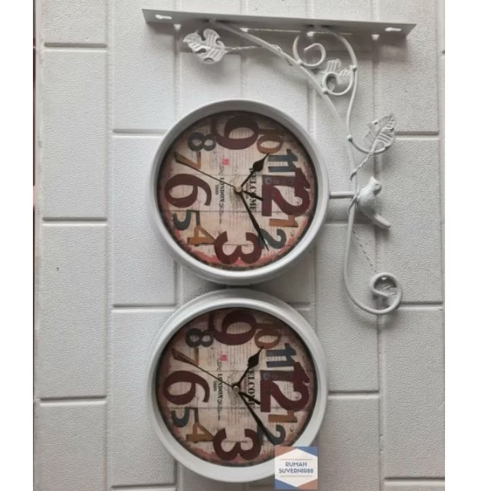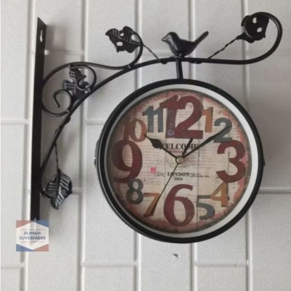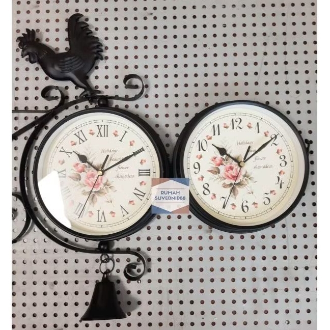 Jam Gantung 2 sisi Garden Shabby Vintage Wall Clock
