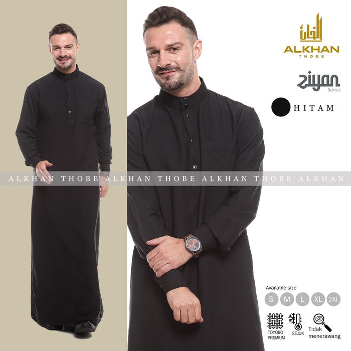 Alkhan Jubah Ziyan Gamis Pria Muslim Lengan Manset Premium Alkhan Jubah Dewasa Hitam Panjang Katun Toyobo Kualitas Terja
