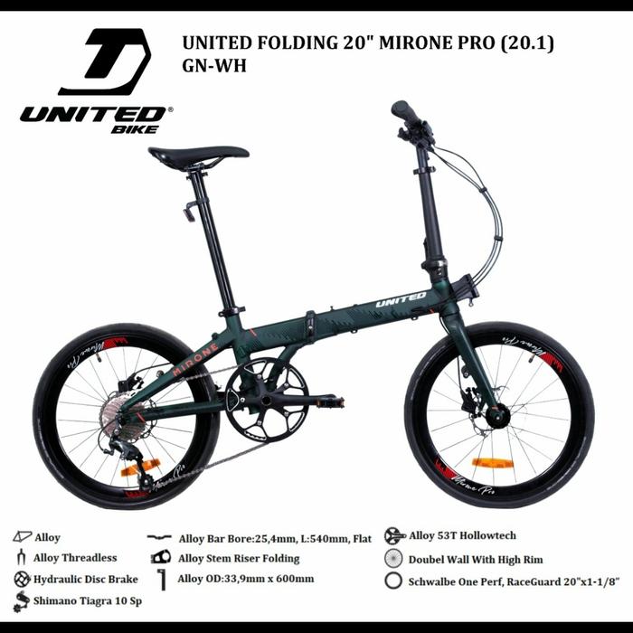 Sepeda Lipat United Mirone Pro 10 Speed Tiagra (20 Inch) - Hijau