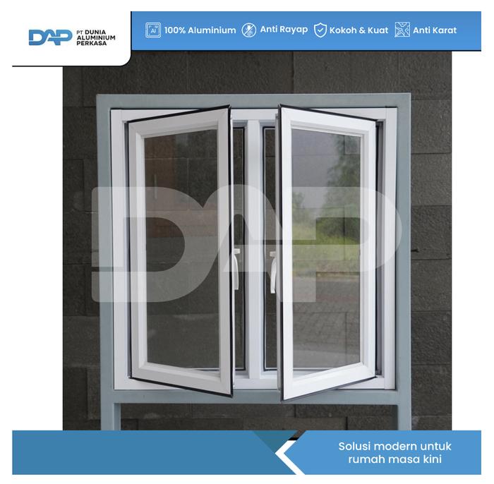 Jendela Aluminium L100 x T100 (2 daun) - Putih Bening J05 Swing Kiri